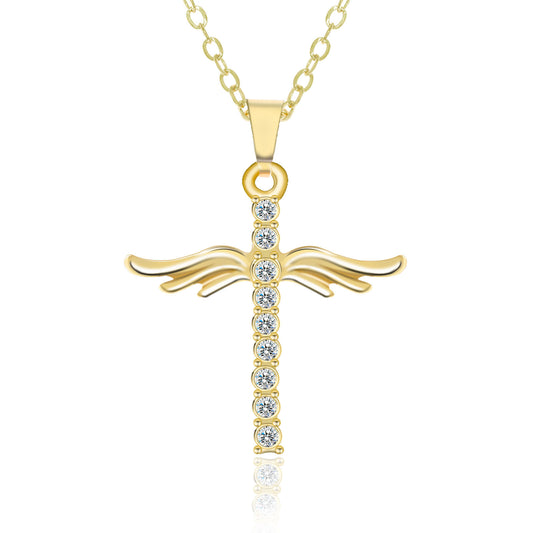 Angel Wings Cross Pendant Necklace For Woman With O Type Stainless Steel Chain Necklace Jewelry Gift